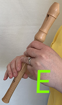 To Play an "E" we cover the hole on the back of your recorder with our left thumb.