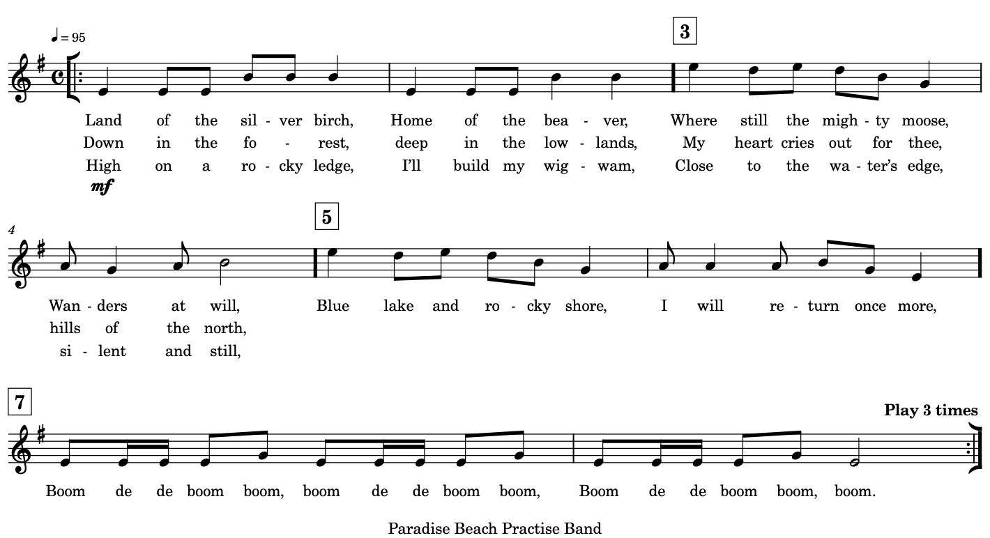 When playing in: 2 parts, Part 2 starts when Part 1 gets to bar 5.