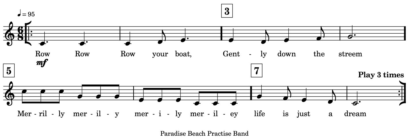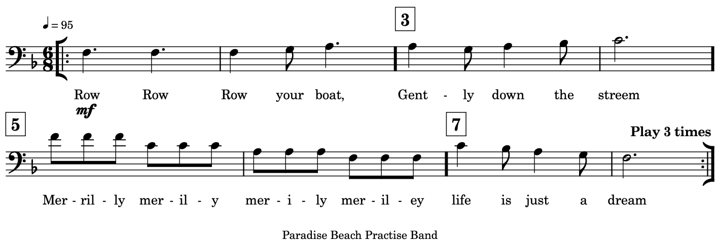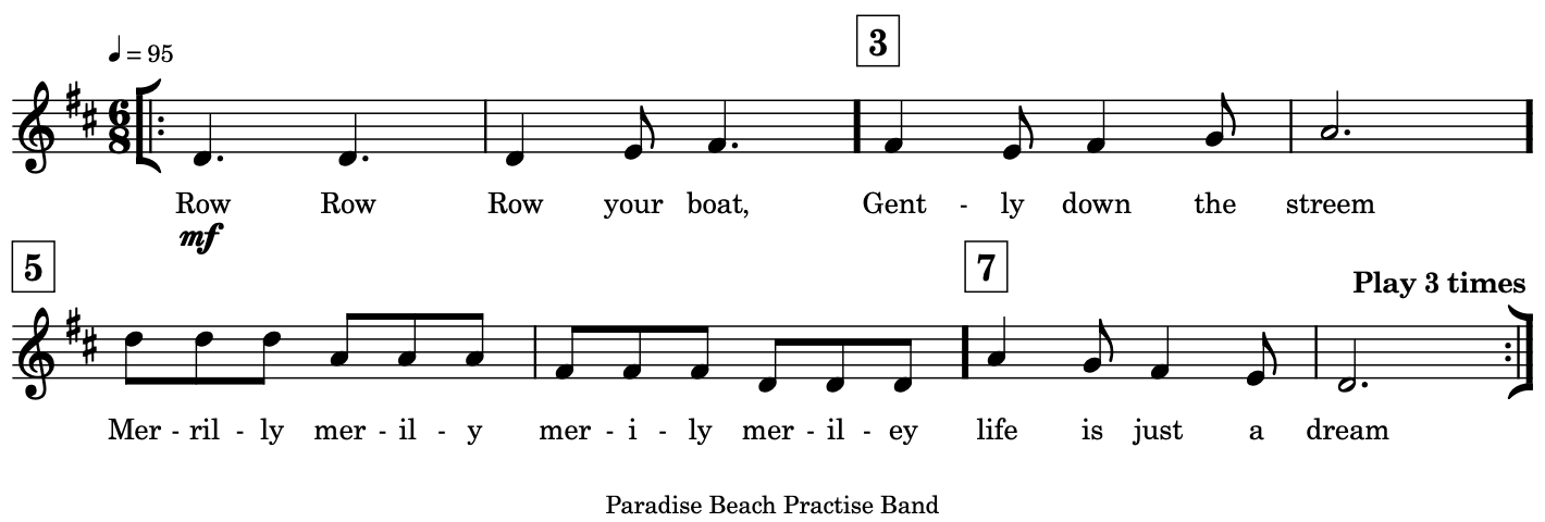 When playing in: 2 parts, Part 2 starts when Part 1 gets to bar 5.